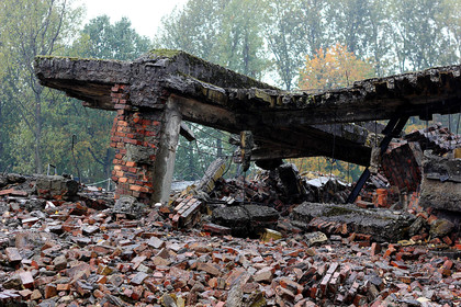 Europe, Pologne, Voivodie petite pologne, Oswiecim, Auschwitz Birkenau, le vestige en ruine des chambres a gaz, detruit en 1945 a la liberation par l armee rouge, les nazis entreprennent de detruire et d effacer les traces des crimes commis, le camp fut construit a partir de 1940 par heinrich himmler plus de 1.1 millions d enfants, de femmes et d hommes meurent dont 900 000 directement a la sortie du train, aujourd hui monument historique et culturel qui contribu au devoir de memoire inscrit au patrimoine mondial de l unesco