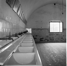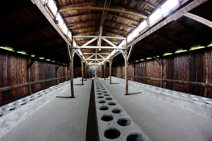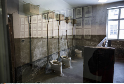 Europe, Pologne, Voivodie petite pologne, Oswiecim, Auschwitz Birkenau, les vestiges de l un des batiments sur l aile droite du camp, ici les vestiges des barraquement des latrines des hommes, construit a partir de 1940 par heinrich himmler, plus de 1.1 millions d enfants, de femmes et d hommes meurent dont 900 000 directement a la sortie du train, aujourd hui monument historique et culturel qui contribu au devoir de memoire inscrit au patrimoine mondial de l unesco