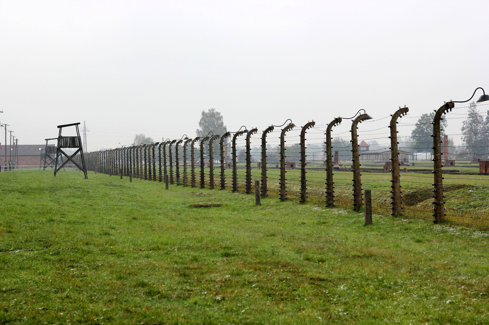 DescriptionEurope, Pologne, Voivodie petite pologne, Oswiecim, Auschwitz Birkenau, les vestiges de l un des batiments sur l aile droite du camp, ici les vestiges des barraquements des habitations des femmes avec au premier plan les barbeles electrifies, le camp est construit a partir de 1940 par heinrich himmler, plus de 1.1 millions d enfants, de femmes et d hommes meurent dont 900 000 directement a la sortie du train, aujourd hui monument historique et culturel qui contribu au devoir de memoire inscrit au patrimoine mondial de l unesco