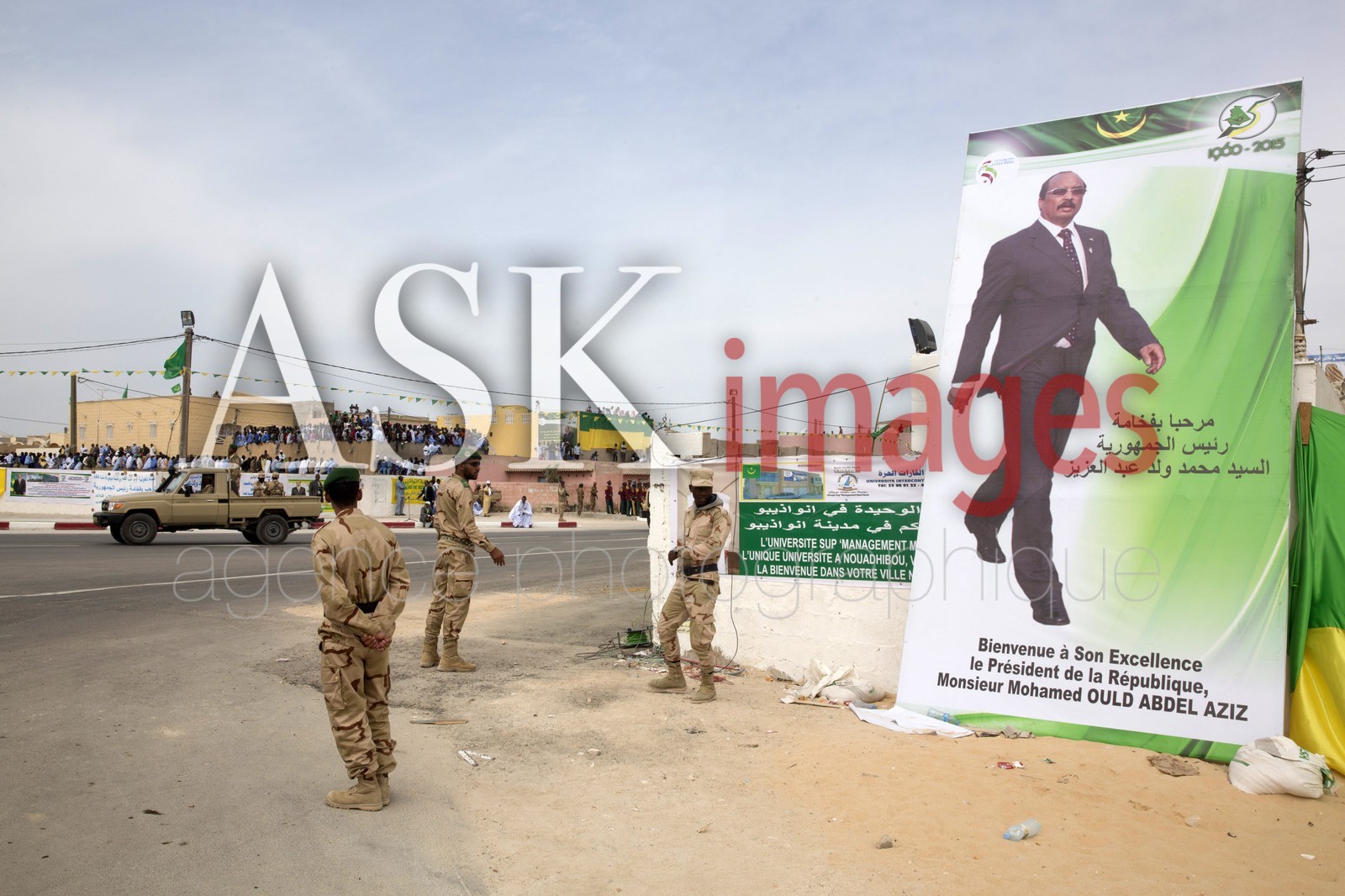 | Description | Military parade in Nouadhibou, Mauritania, for the 55th anniversary of the independence, November 28, 2015, Security guards and poster of President Mohamed Ould Abdel Aziz |