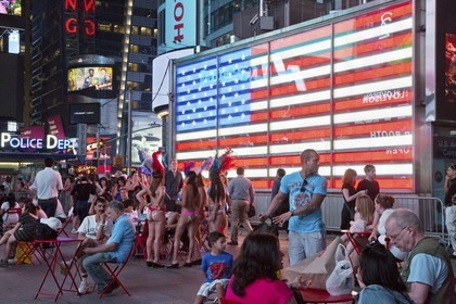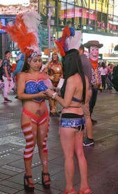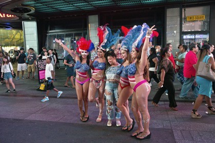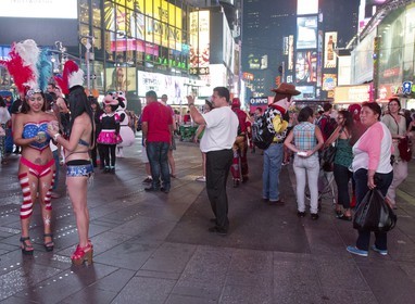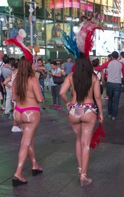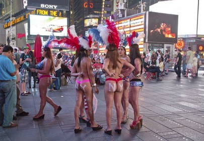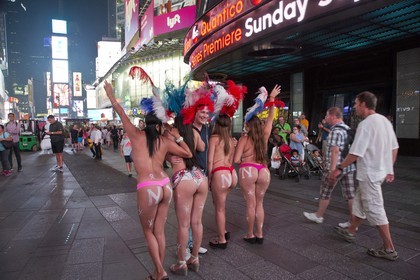 The Desnudas of Time Square in New York, Dressed with a string and the american flag painted on their chest, these women pose with tourists for a few dollars, facing the growing phenomenon, the mayor of New York, Bill Basio took measures.