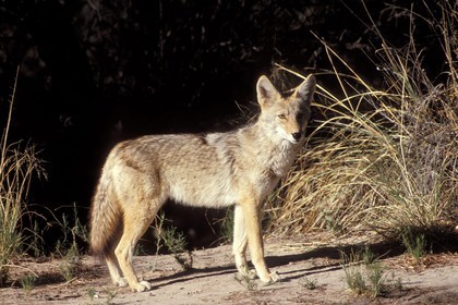 • Western coyote in brush in Big Bend National Park, Texas near Rio Grande Village...©Bob Daemmrich/ The Image Works