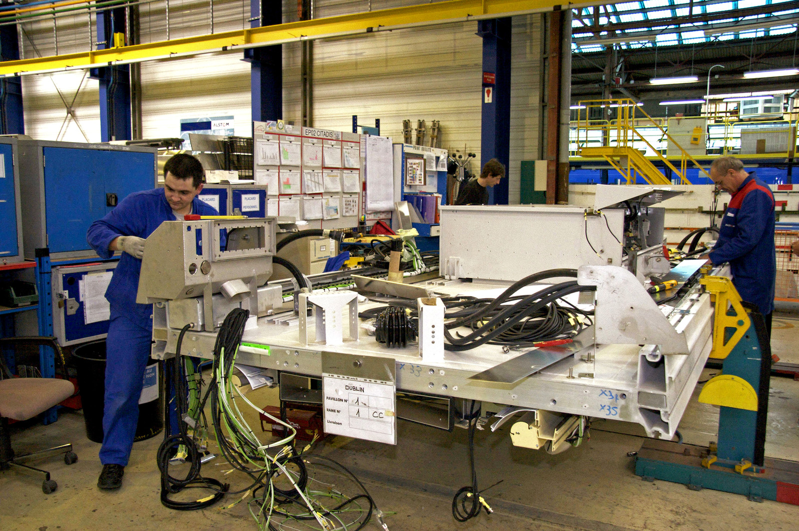 | Description | Workers assemble electric circuits for trams, Alstom factory, La Rochelle, Charente Maritime, France |