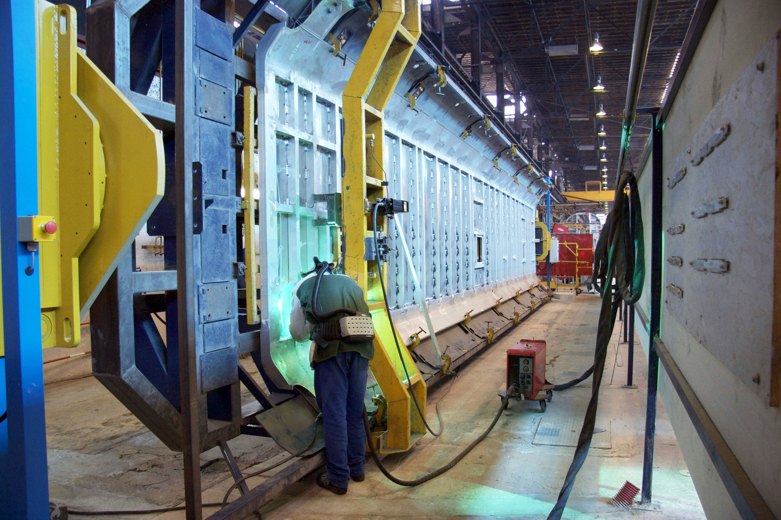 | Description | A worker solders the panel of a two floor TGV train, Alstom factory, La Rochelle, Charente Maritime, France |