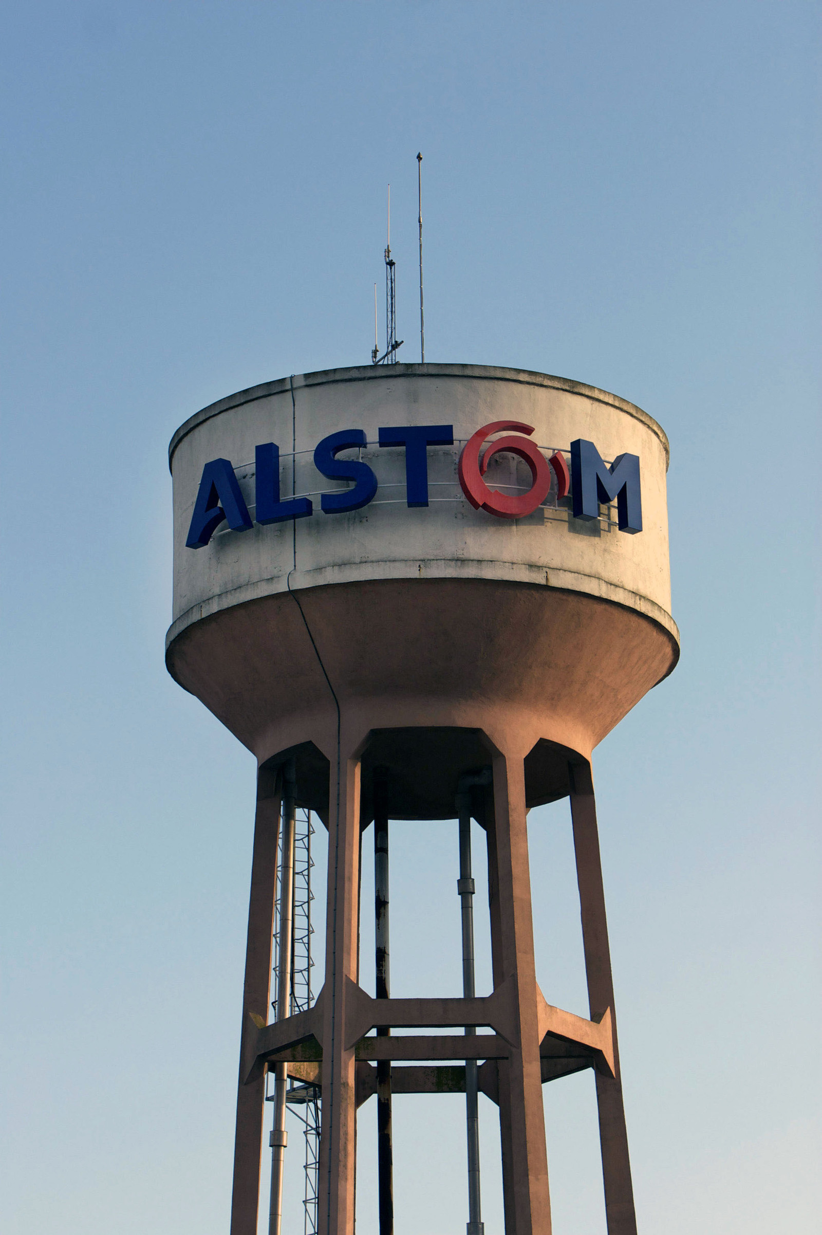 DescriptionThe Alstom logo on a water tower, Alstom factory, La Rochelle, Charente Maritime, France