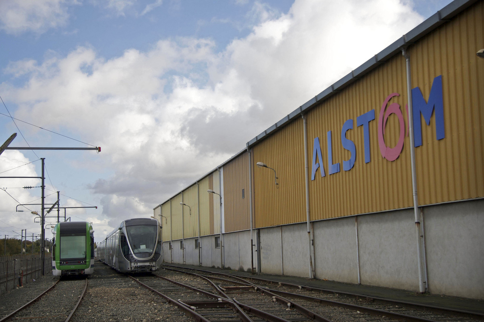 | Description | Trams await delivery outside the Alstom factory, La Rochelle, Charente Maritime, France |