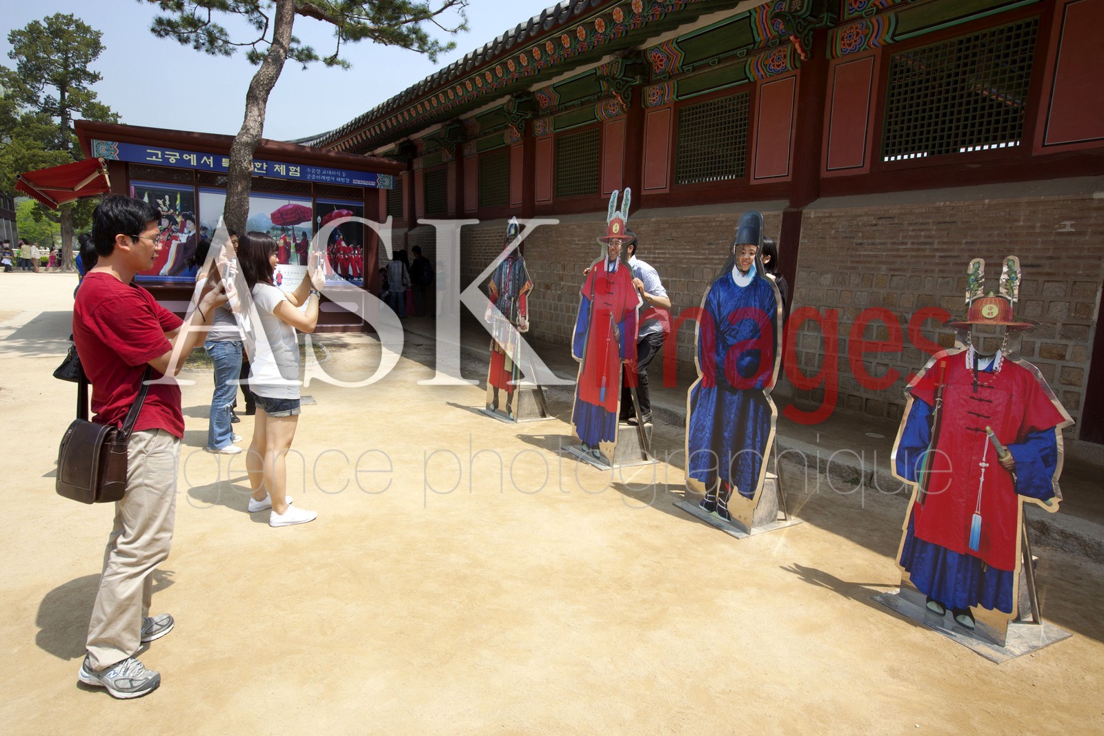 DescriptionSeoul, tourists in front of the Gyeongbokgung palace taking pictures personnage