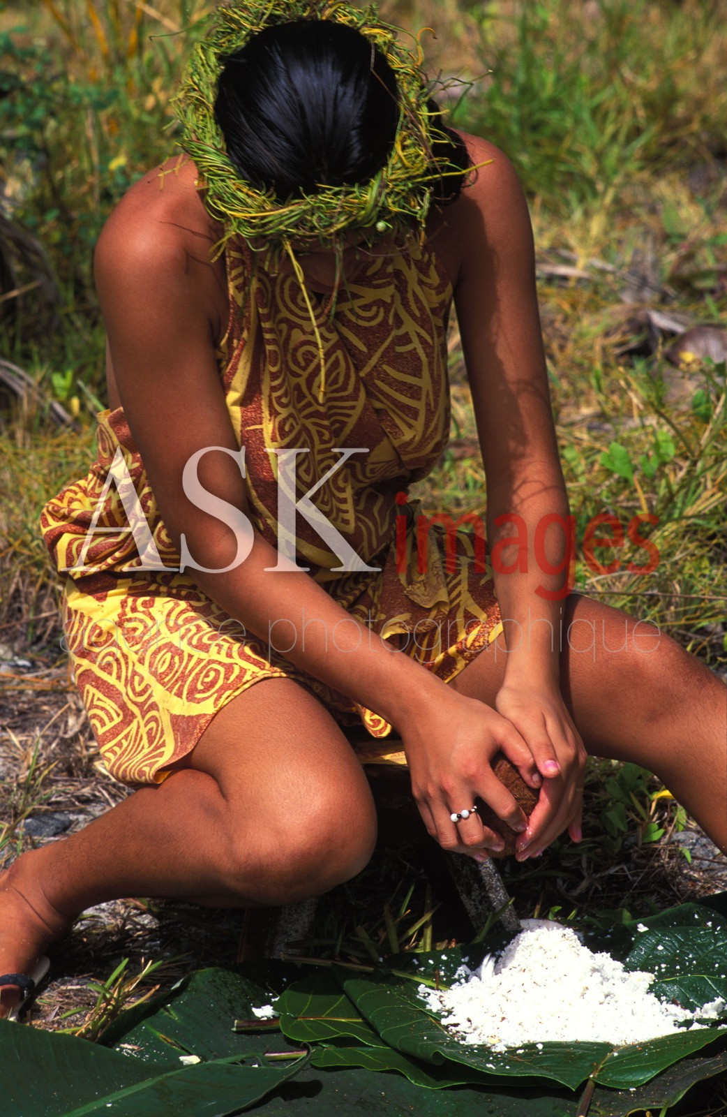 | Description | Woman peeling coconut, Tahiti, French Polynesia |