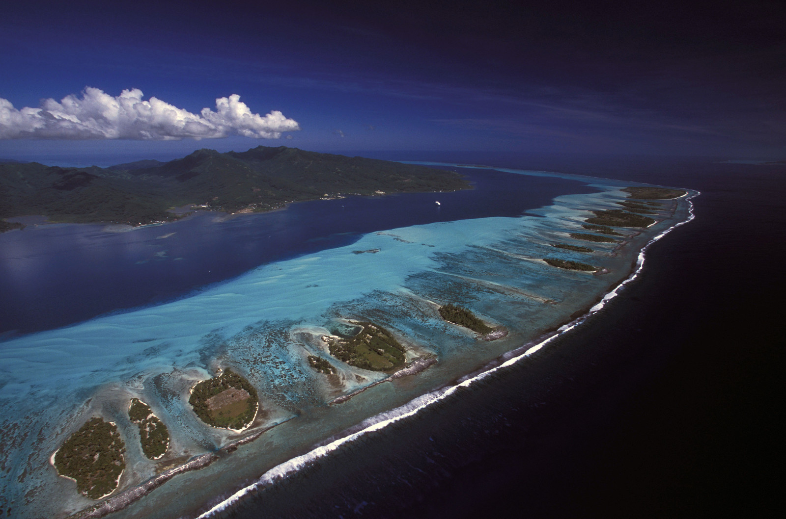 Vue aerienne Bora-Bora *** Bora Bora island, French Polynesia.