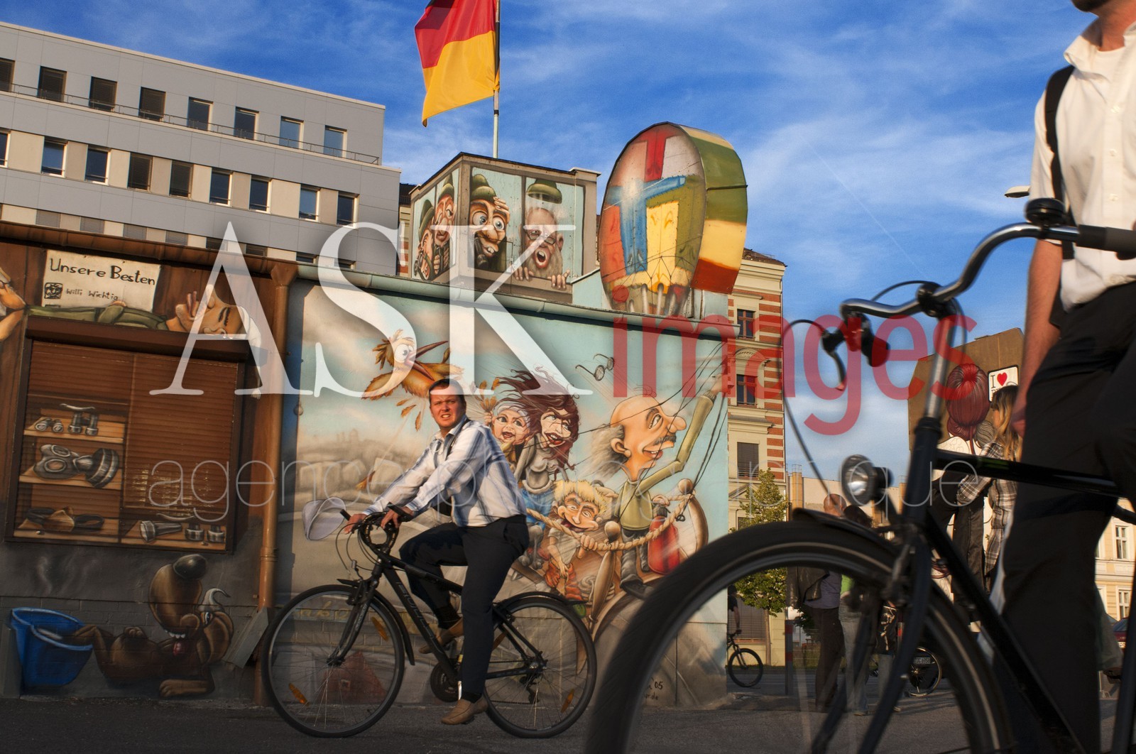 | Description | Germany, Berlin. Bicycles. A relaxing afternoon on the lawn of the East side gallery along the Spree. The East Side Gallery is an international memorial for freedom. It is a 1.3 km long section of the Berlin Wall located near the centre of Berlin on Muhlenstrasse in Friedrichshain-Kreuzberg. |