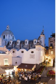 ITALY / Italian Coffeehouses / Campania / Capri / La Piazzetta ( Piazza Umberto I ) with the church Chiesa Santo Stefano and the bar Tiberio..© Christina Anzenberger-Fink / Anzenberger Italie du sud, Campanie