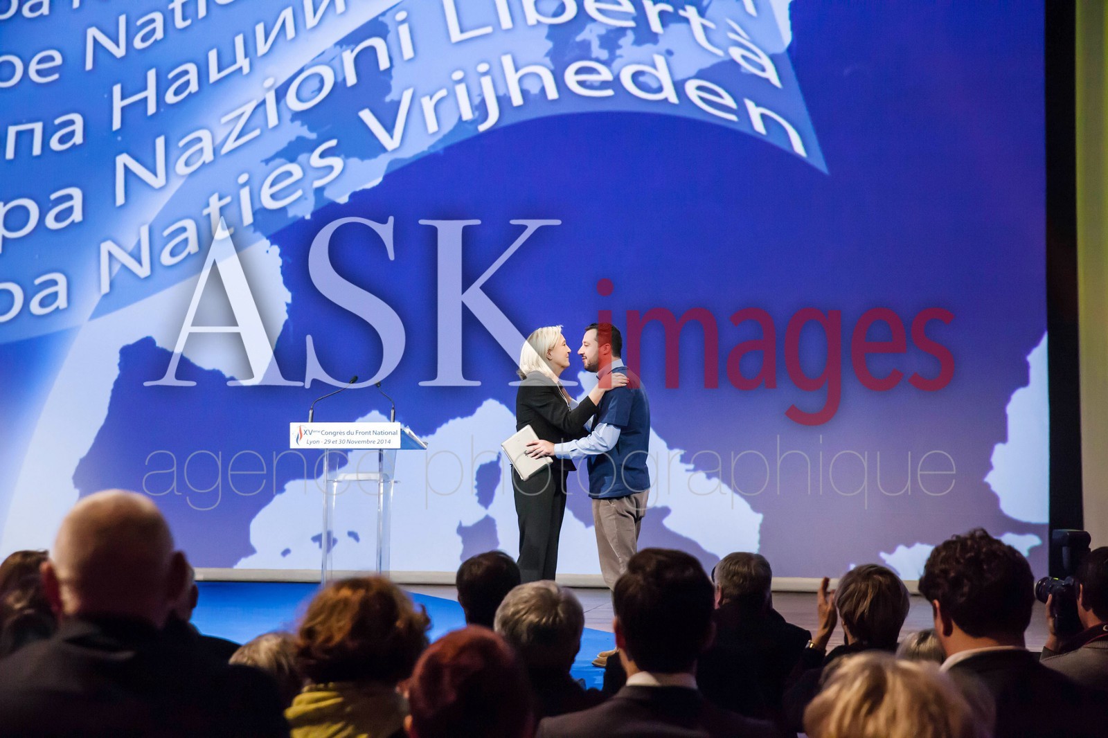 | Description | Marine Le Pen with Matteo Salvini european extreme right leader of the italian Legua Nord during the Congress of the Front National, Lyon November 2014 |