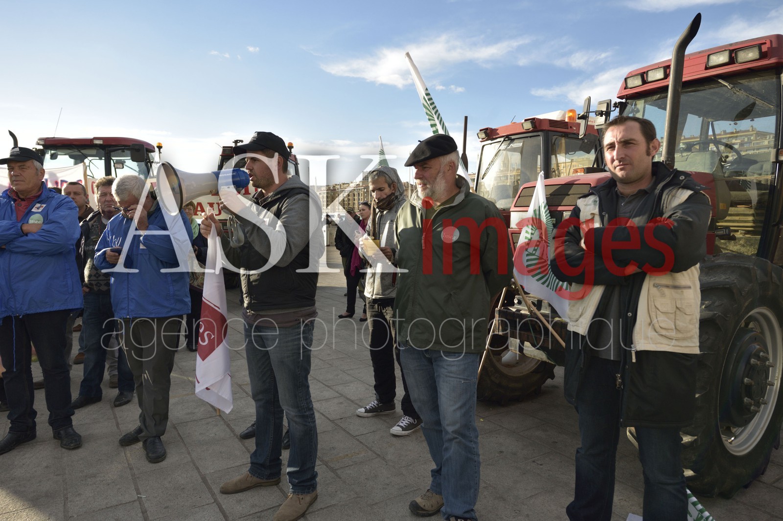 DescriptionFarmers, breeders, rice farmers demonstration on the Vieux Port and in front of the prefecture of Marseille. Novembre 2014.