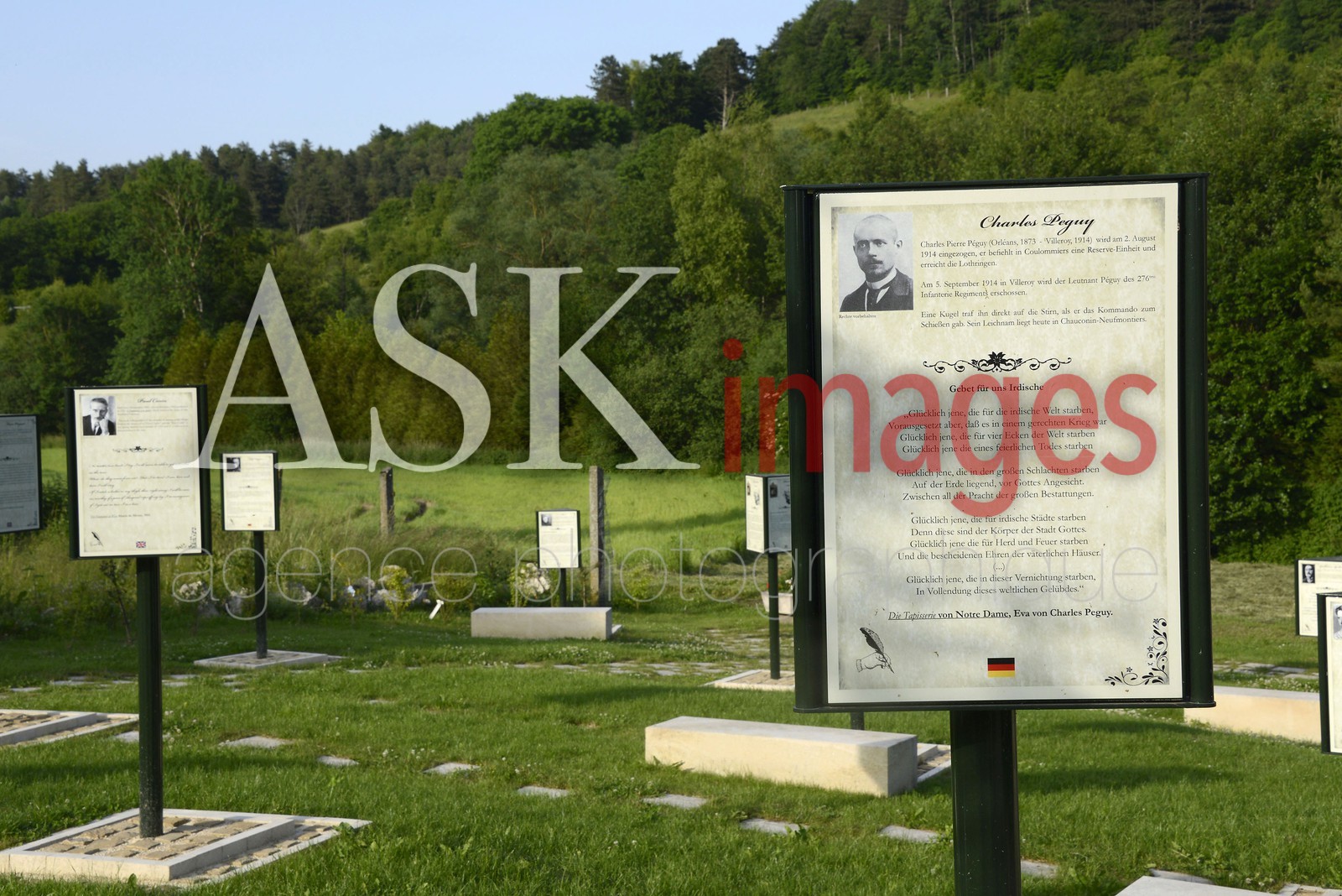| Description | Saint Remy la Calonne. Garden literary writers in memory of the combatants of the 1914-1918 war. Panel has three faces written in three languages (English, French, German) |