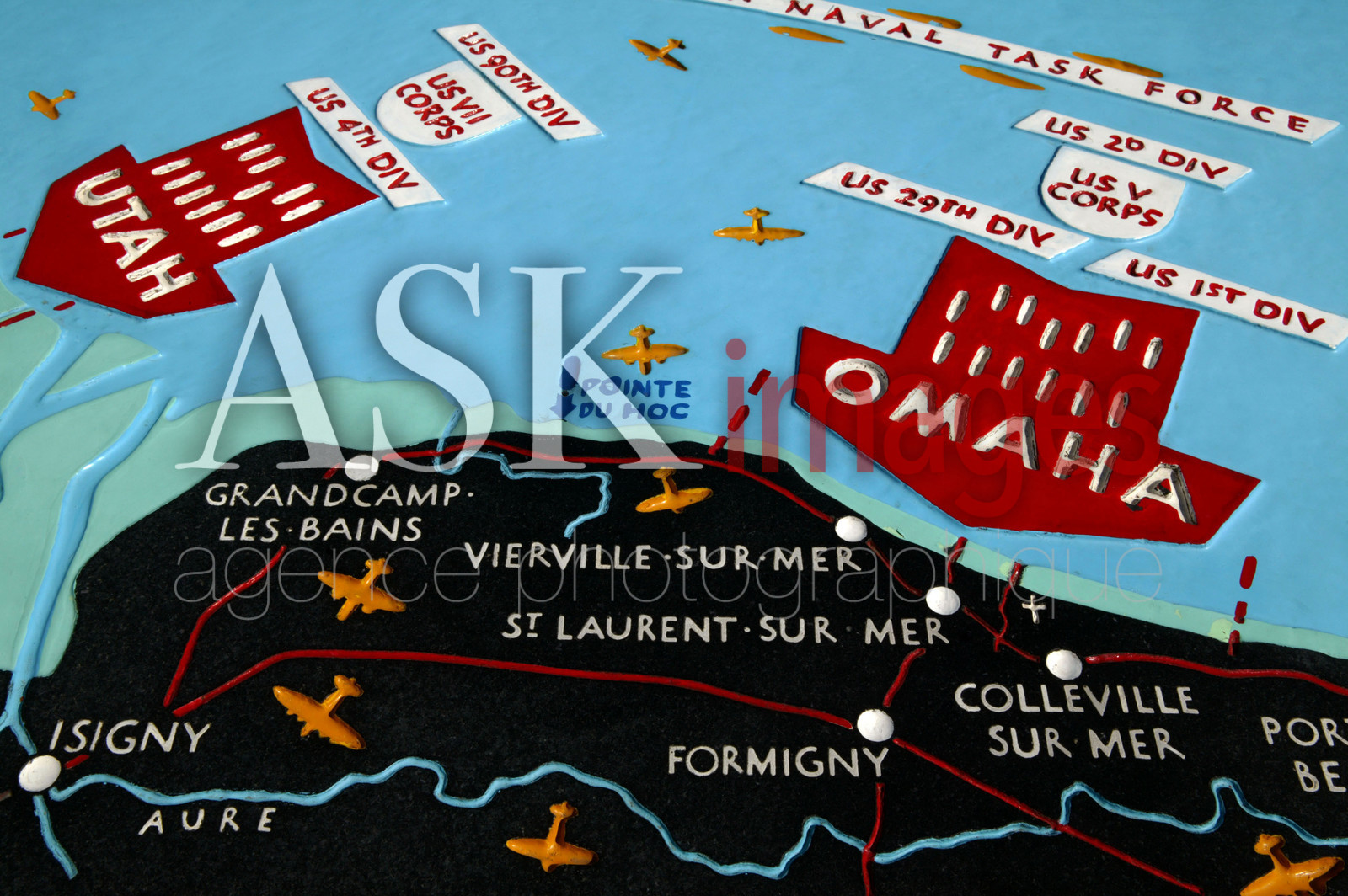 | Description | Cimetiere americain de Colleville/Saint-Laurent-sur-Mer Cartes de debarquement allie. |