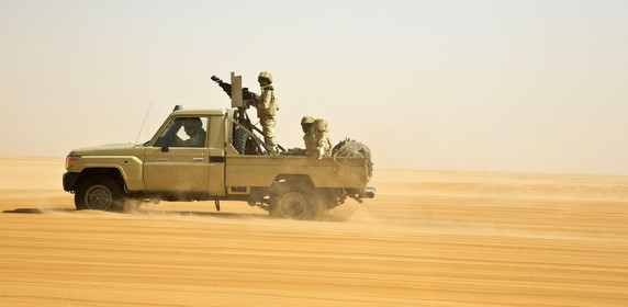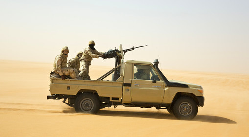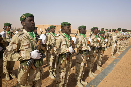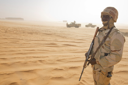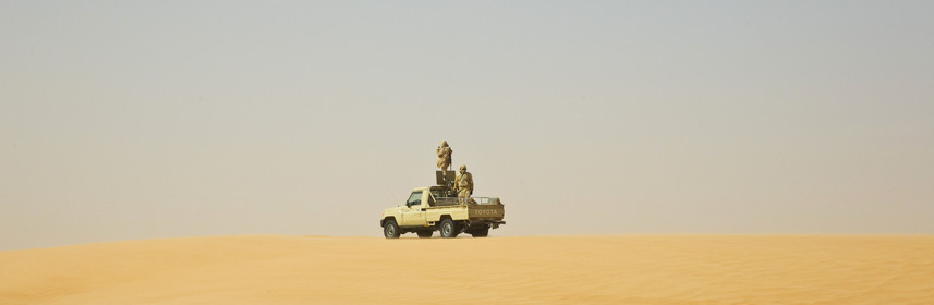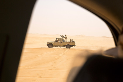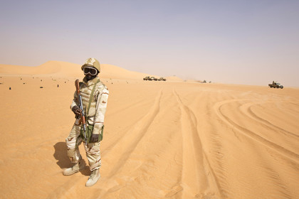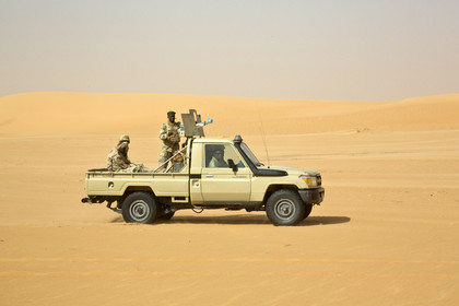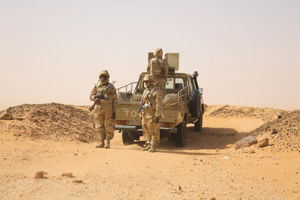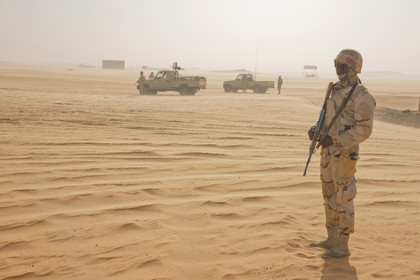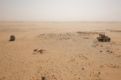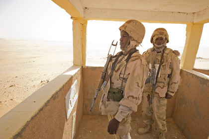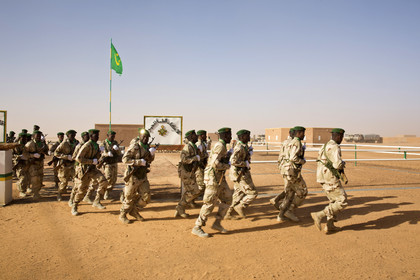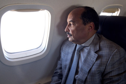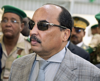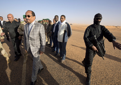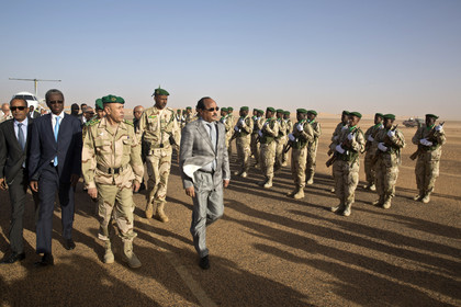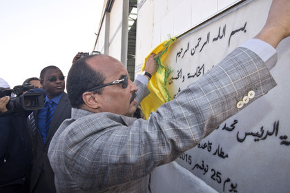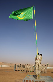 • The president of Mauritania, Mohamed Ould Abdel Aziz visits the military base of Le Meye in mauritanian desert, rising flag
