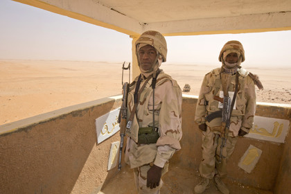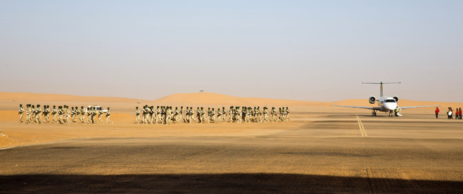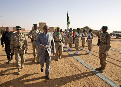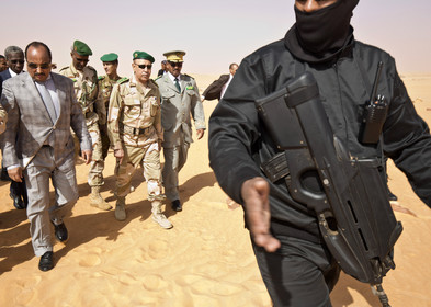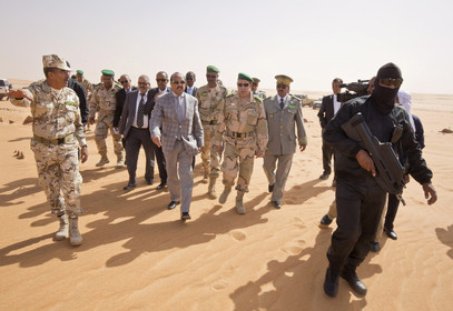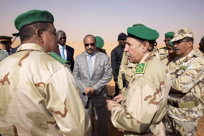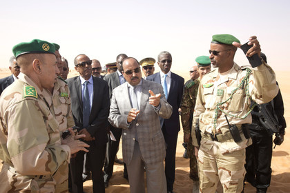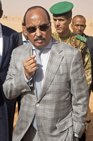 • The president of Mauritania, Mohamed Ould Abdel Aziz visits the military base of Le Meye in mauritanian desert