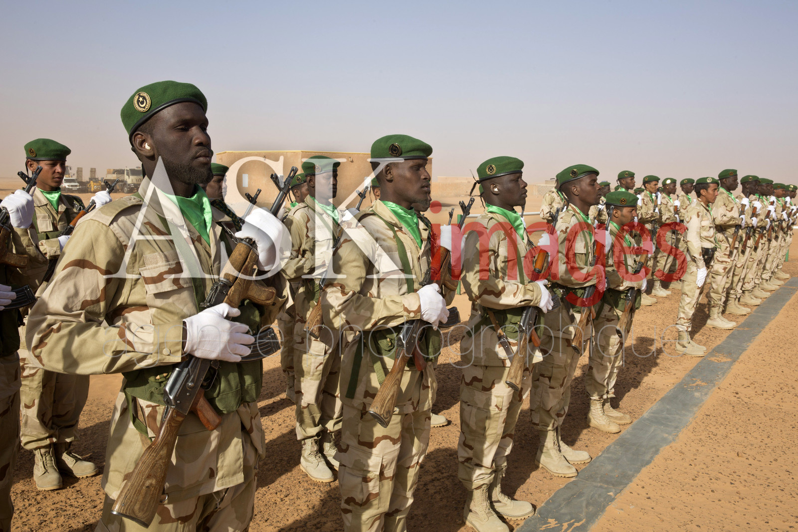 | Description | The president of Mauritania, Mohamed Ould Abdel Aziz visits the military base of Le Meye in mauritanian desert |