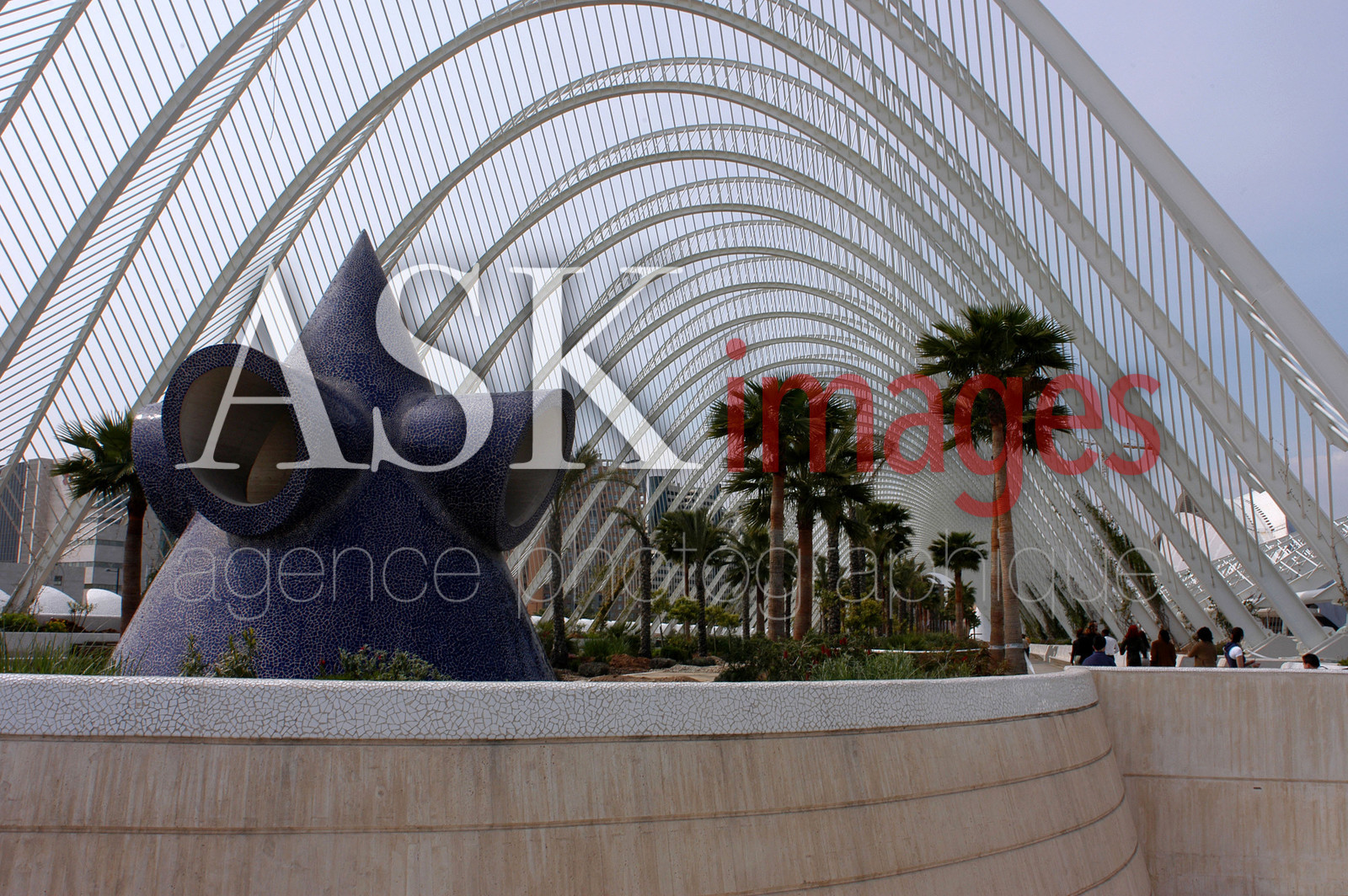 DescriptionUmbracle in Astronomy gardens, Ciudad de las Artes y las Ciencias by architect Santiago Calatrava, shaded space for walking by architect Santiago Calatrava, Valencia