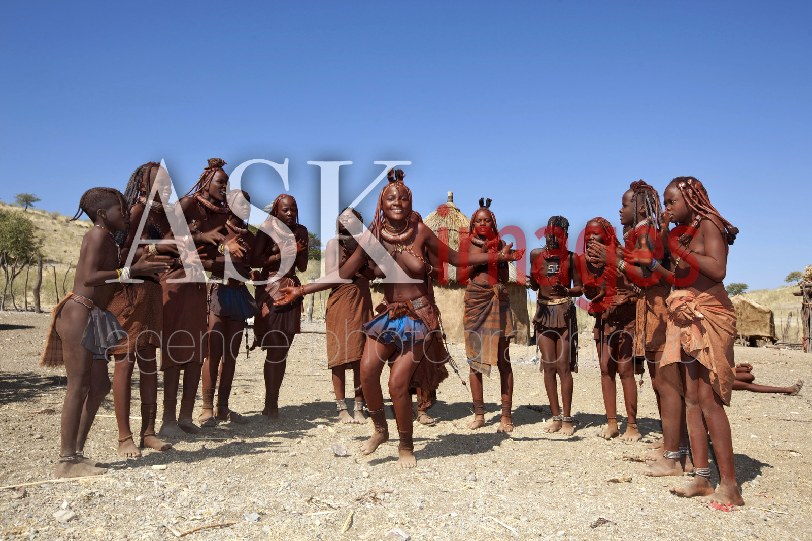 | Description | LES HIMBA sont un peuple de pasteurs nomades de Namibie. Ils se parent volontiers de colliers en cuir et d'anneaux en laiton et enduisent leur peau d'une pate a base de beurre et de bois rouge. Danse traditionnelle *** THE HIMBA are a nomadic people of Namibia. They adorn themselves with leather collars and brass rings and coat their skin with a paste made of butter and red wood, Traditional dance, Namibia. |
