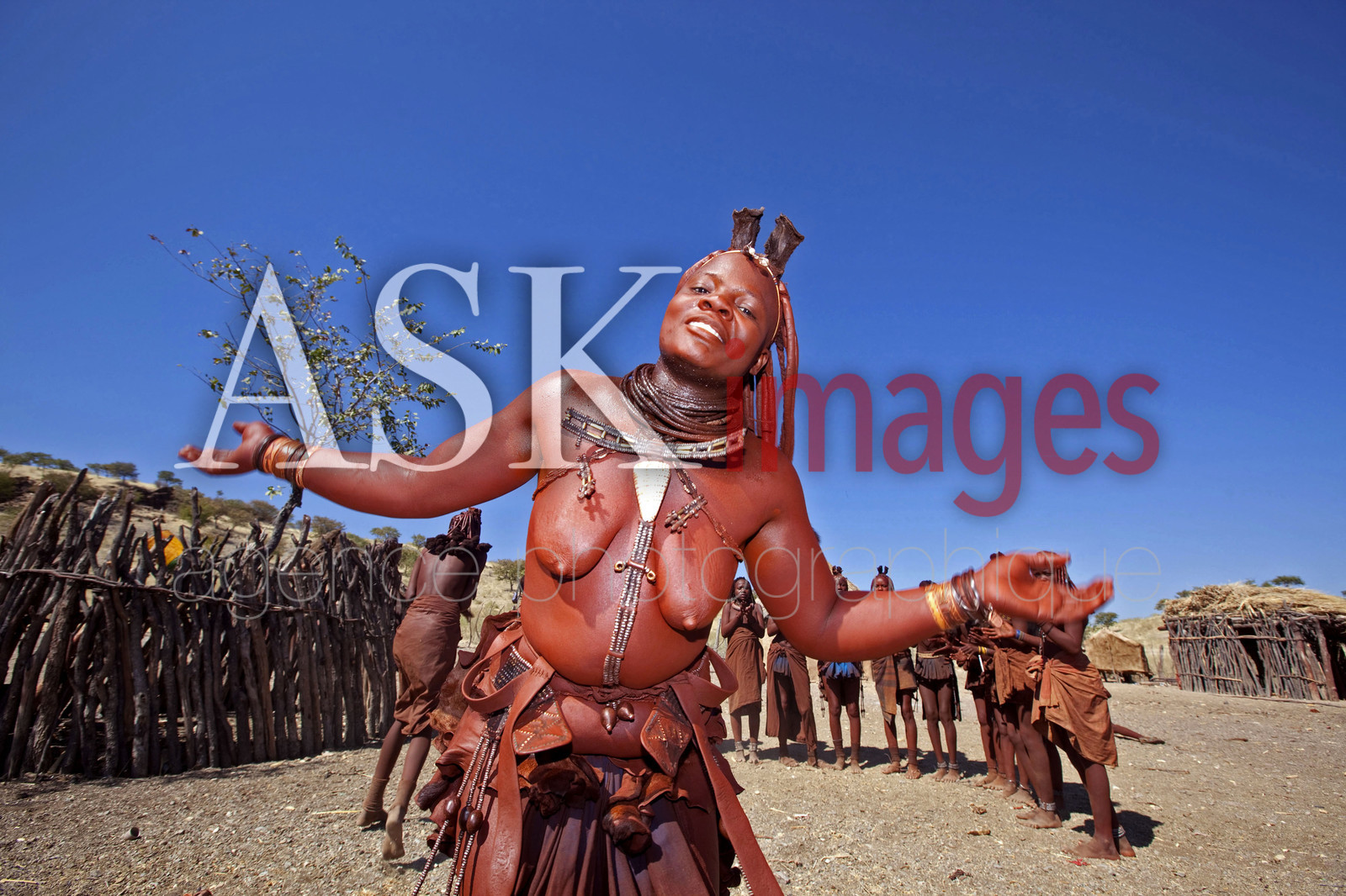 | Description | LES HIMBA sont un peuple de pasteurs nomades de Namibie. Ils se parent volontiers de colliers en cuir et d'anneaux en laiton et enduisent leur peau d'une pate a base de beurre et de bois rouge. Danse traditionnelle *** THE HIMBA are a nomadic people of Namibia. They adorn themselves with leather collars and brass rings and coat their skin with a paste made of butter and red wood, Traditional dance, Namibia. |