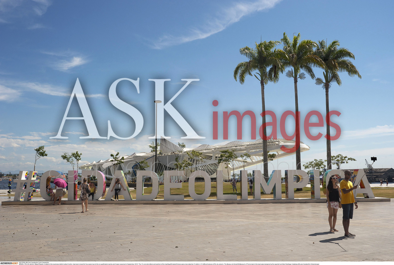 | Description | BRAZIL / Rio de Janeiro / ..Mau· Square, located in the business district called Centro, has been closed for four years due to the re-qualification works and it was reopened in September 2015. .The 15 concrete letters and symbol of the hashtag #CidadeOlimpica were decorated by 15 artist, in 15 different places of Rio de Janeiro..The Museu do Amanh„ (Museum of Tomorrow) in the back was designed by the spanish architect Santiago Calatrava...© Lara Ciarabellini / Anzenberger |