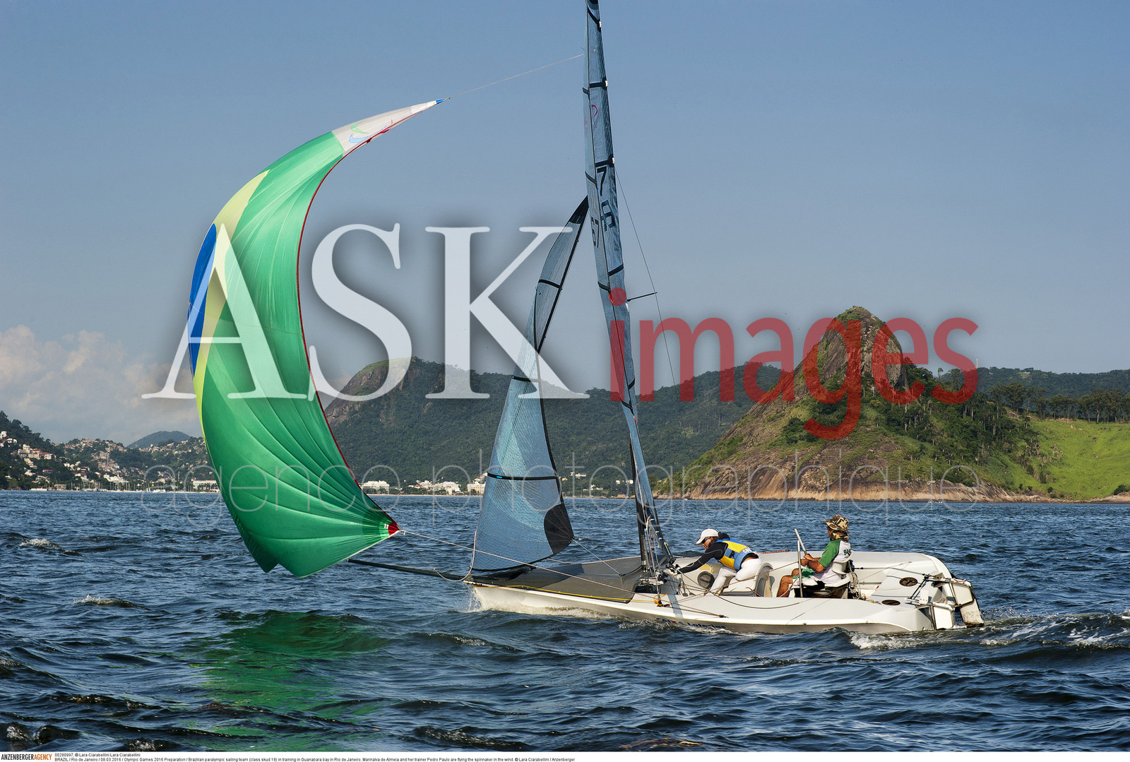 | Description | BRAZIL / Rio de Janeiro / 08.03.2016 / Olympic Games 2016 Preparation / Brazilian paralympic sailing team (class skud 18) in training in Guanabara bay in Rio de Janeiro. Marinalva de Almeia and her trainer Pedro Paulo are flying the spinnaker in the wind...© Lara Ciarabellini / Anzenberger |