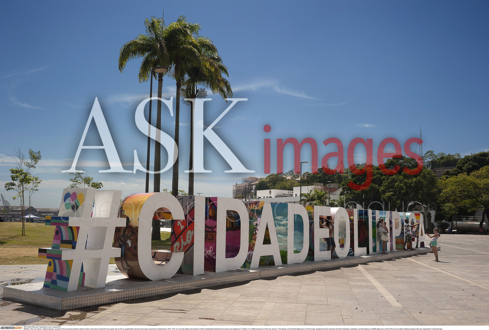 | Description | BRAZIL / Rio de Janeiro / ..Mau· Square, located in the business district called Centro, has been closed for four years due to the re-qualification works and it was reopened in September 2015. .The 15 concrete letters and symbol of the hashtag #CidadeOlimpica were decorated by 15 artist, in 15 different places of Rio de Janeiro..The Museu do Amanh„ (Museum of Tomorrow), designed by the spanish architect Santiago Calatrava, and the Museu do MAR (Museum of Art of Rio) are located in Mau· Square...© Lara Ciarabellini / Anzenberger |