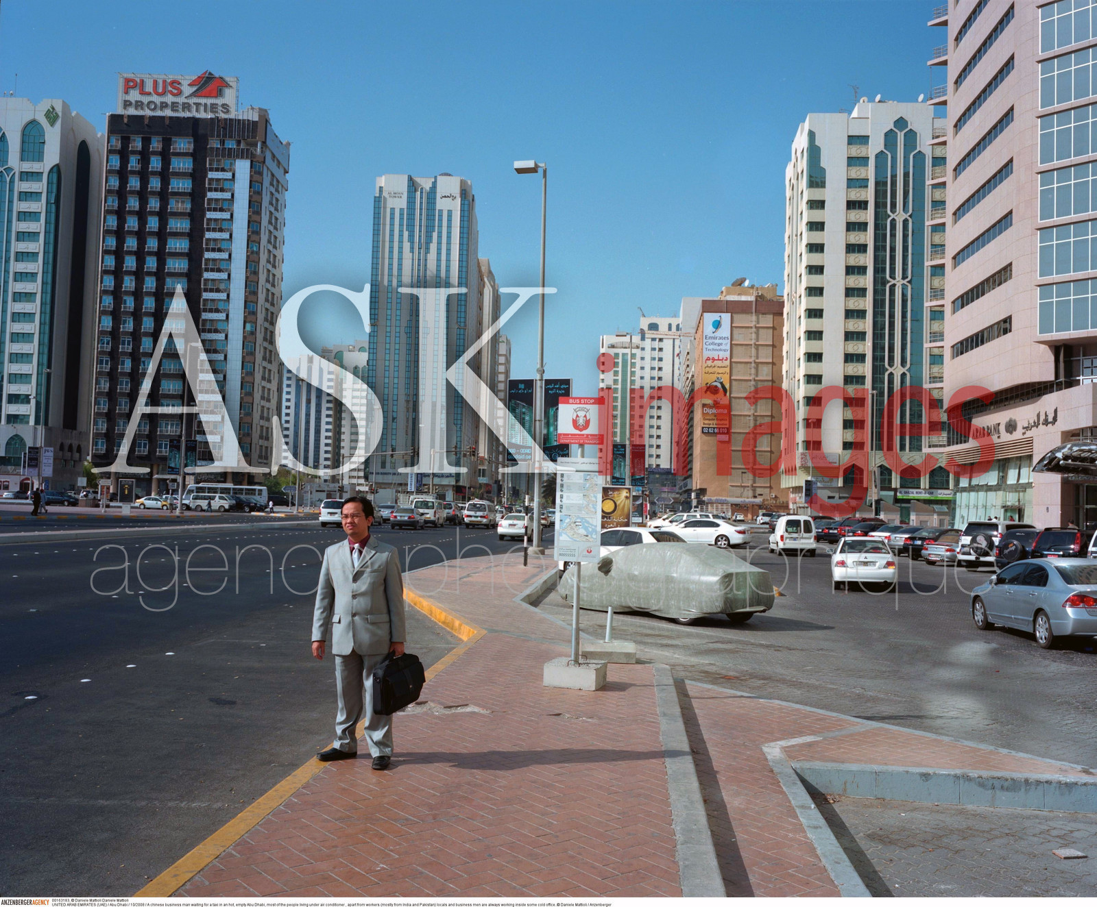 | Description | UNITED ARAB EMIRATES (UAE) / Abu Dhabi / A chinese business man waiting for a taxi in an hot, empty Abu Dhabi, most of the people living under air conditioner , apart from workers (mostly from India and Pakistan) locals and business men are always working inside some cold office..© Daniele Mattioli / Anzenberger/ASK Images |