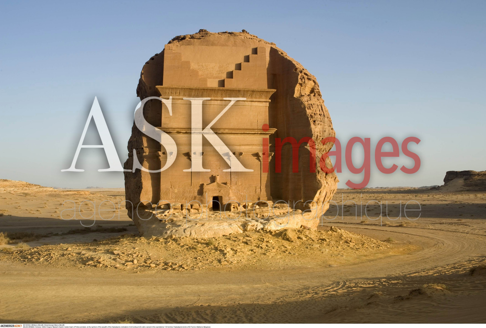 DescriptionSAUDI ARABIA / Hegra / Mada'in Saleh / sister town of Petra (Jordan), is the symbol of the wealth of the Nabataens civilization (1st Century A.D.) who carved in the sandstone 133 tombs / Nabataens tomb of El Ferid or Mahal el Megless