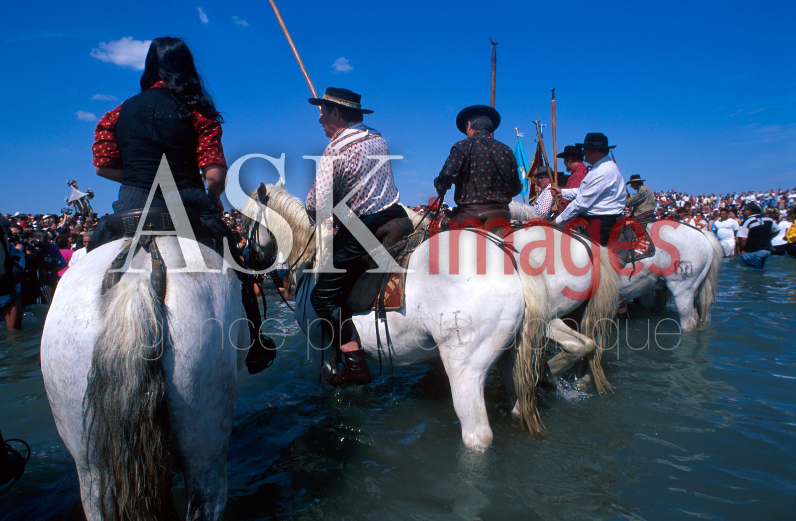 | Description | France, Camargue, Les Saintes Maries de la Mer, Gipsy festival in May, gardians (the cowherds).. |