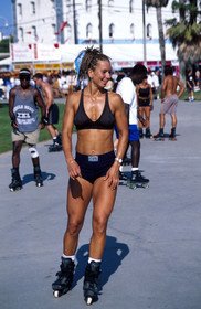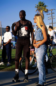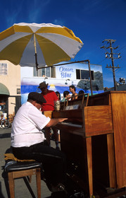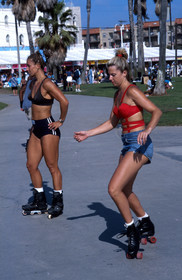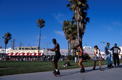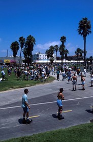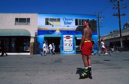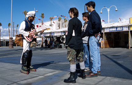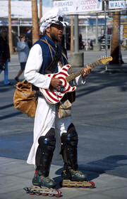 California, Los Angeles, Venice Beach, a guitar player on roller skates playing guitar ... California, Los Angeles
