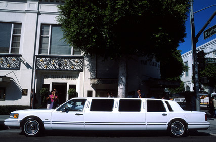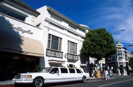 California, Los Angeles, Beverley Hills, limousine in front of Battaglia shop on Rodeo Drive. California, Los Angeles