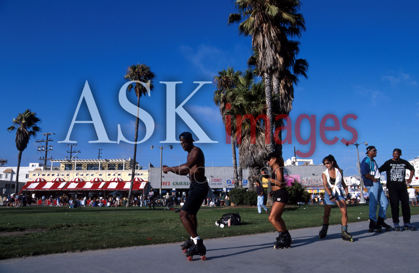 | Description | California, Los Angeles, Venice Beach, people on roller, skating. |