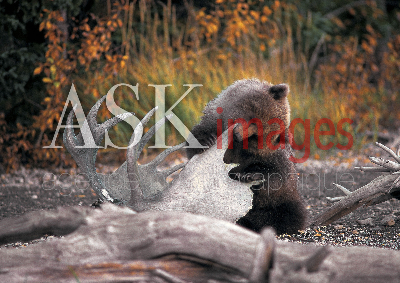 | Description | Brooks river. Un ourson s'est approche des habitations et s'applique a tout detruire. |