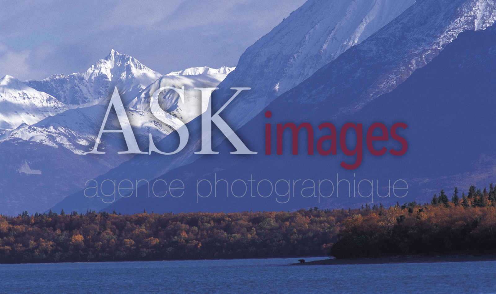 | Description | Alaska, Brooks river. Un ours au bord du lac Naknek. |