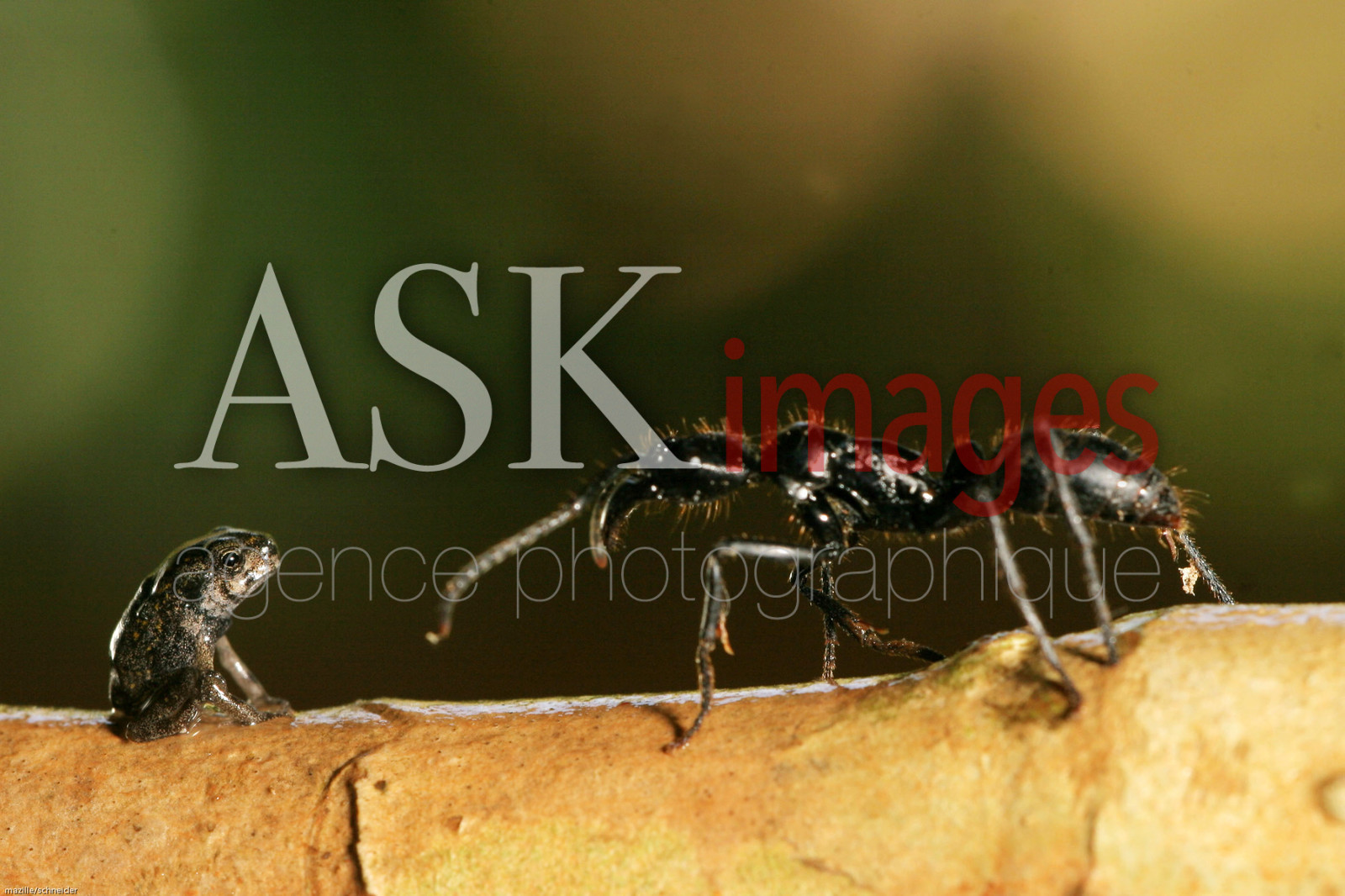 DescriptionFourmi ponera face a un jeune crapaud buffle ( bufo marinus)