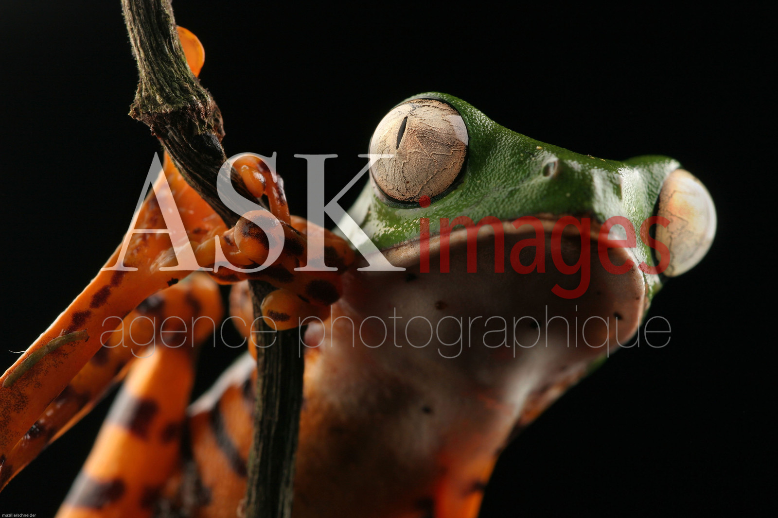 | Description | Portrait de phyllomedusa tomopterna sur une branche, guyane |