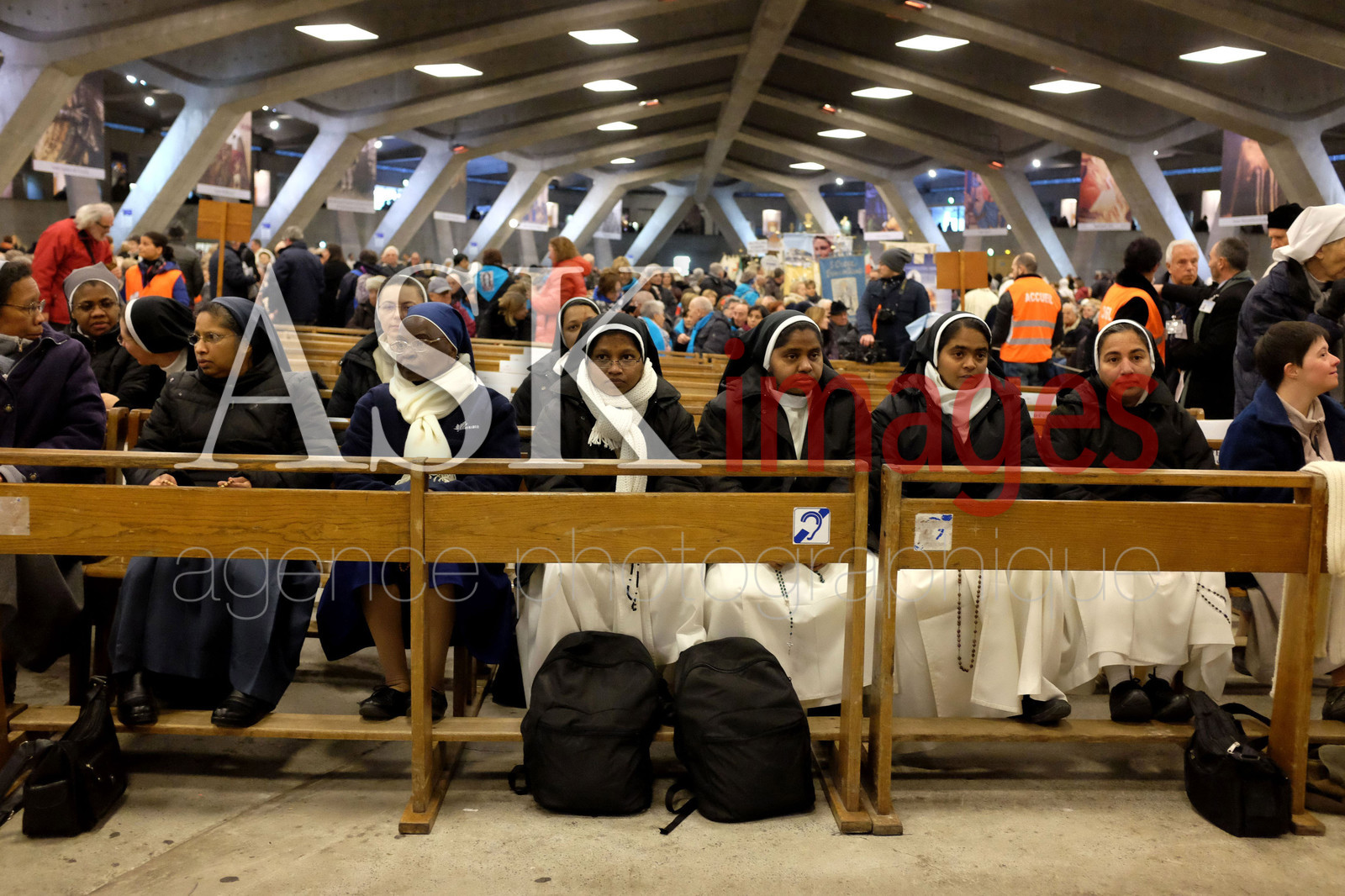 | Description | LES SOEURS ASSISES ATTENDENT LA MESSE DU CARDINAL PIETRO PAROLIN, SECRETAIRE DU VATICAN, A LA BASILIQUE SAINT PIE X DE LOURDES, LOURDES, HAUTES PYRENEES, OCCITANIE, FRANCE, EUROPE |