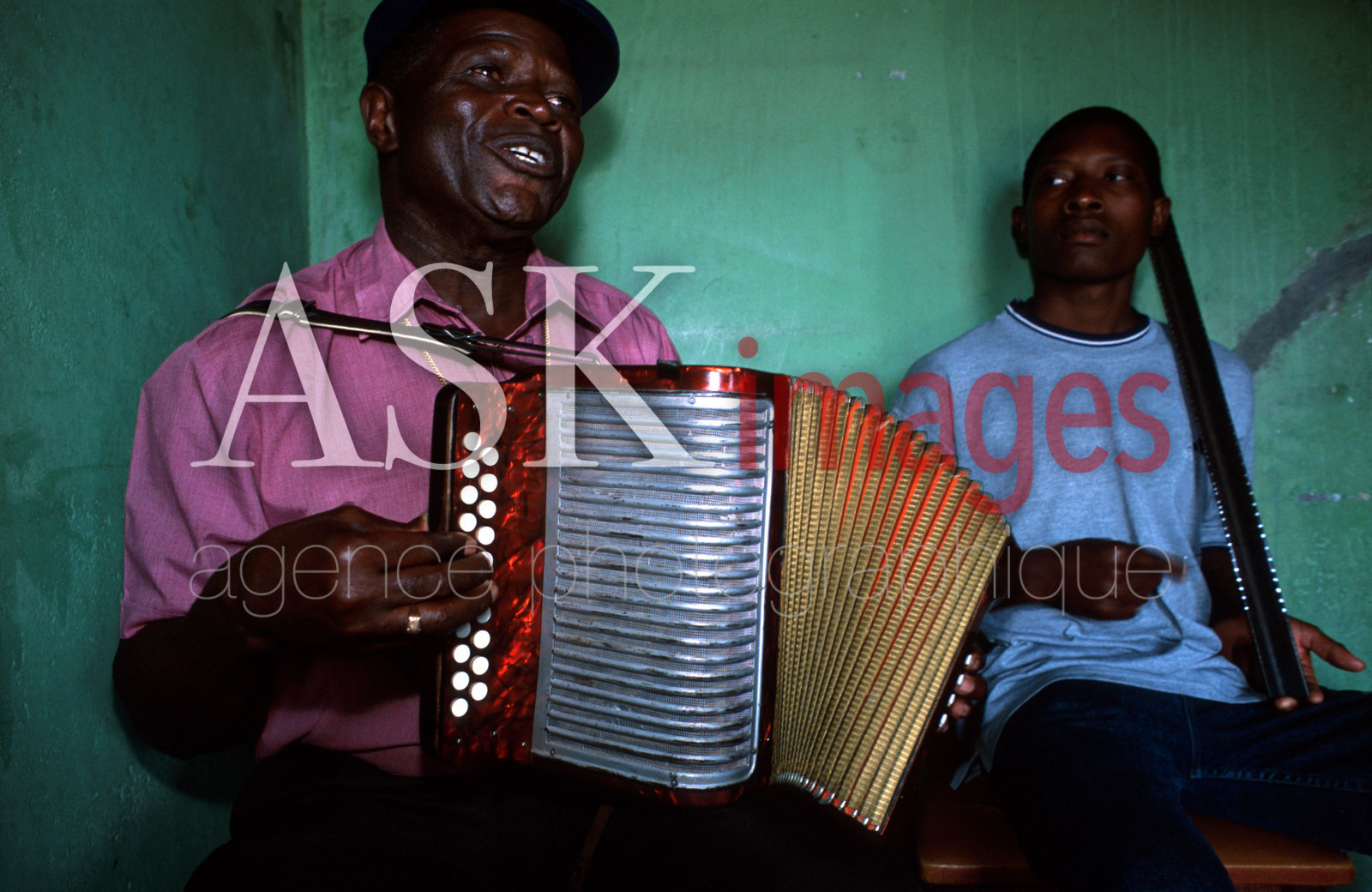 | Description | Sema Lopi jouant de l'accordeon accompagne de son fils pendant la Funana, Sao Tiago, Cap Vert |