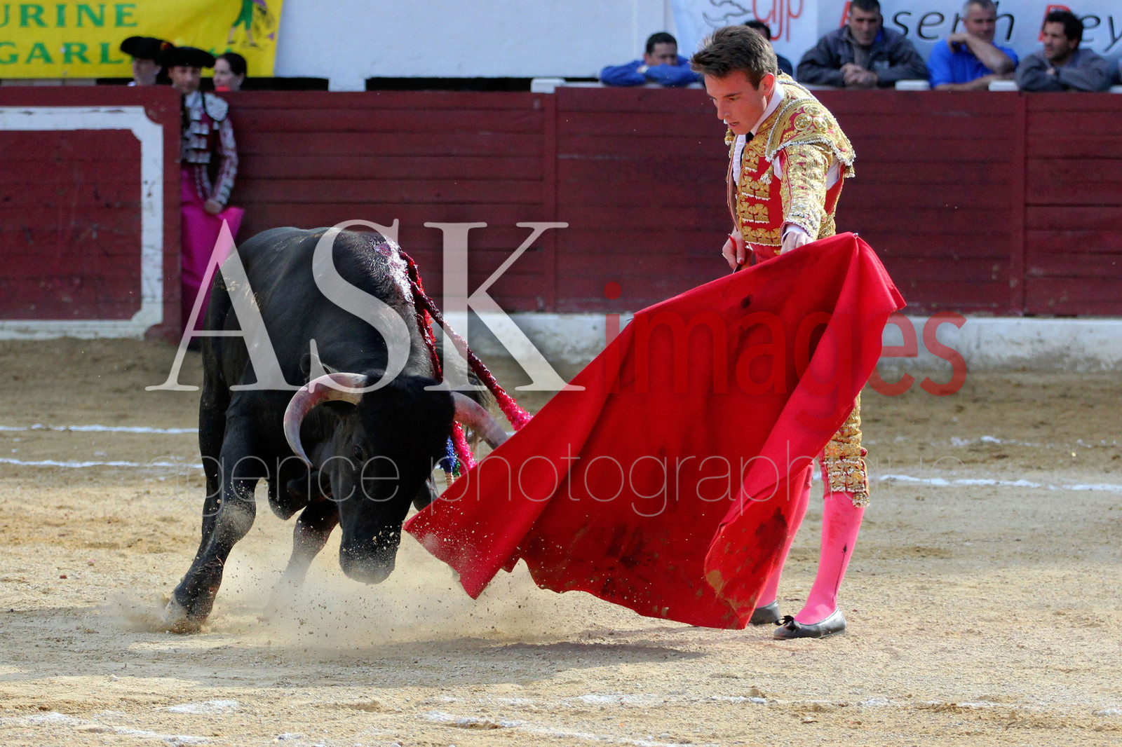| Description | europe, france, aquitaine, landes, air sur l adour, le jeune matador, tibo garcia pendant les novilladas de la madeleine de aire sur l adour, qui realise des passes sur un taureau de trois ans qui pese tout de meme 500 Kg, les banderilles sont planter dans le taureau |