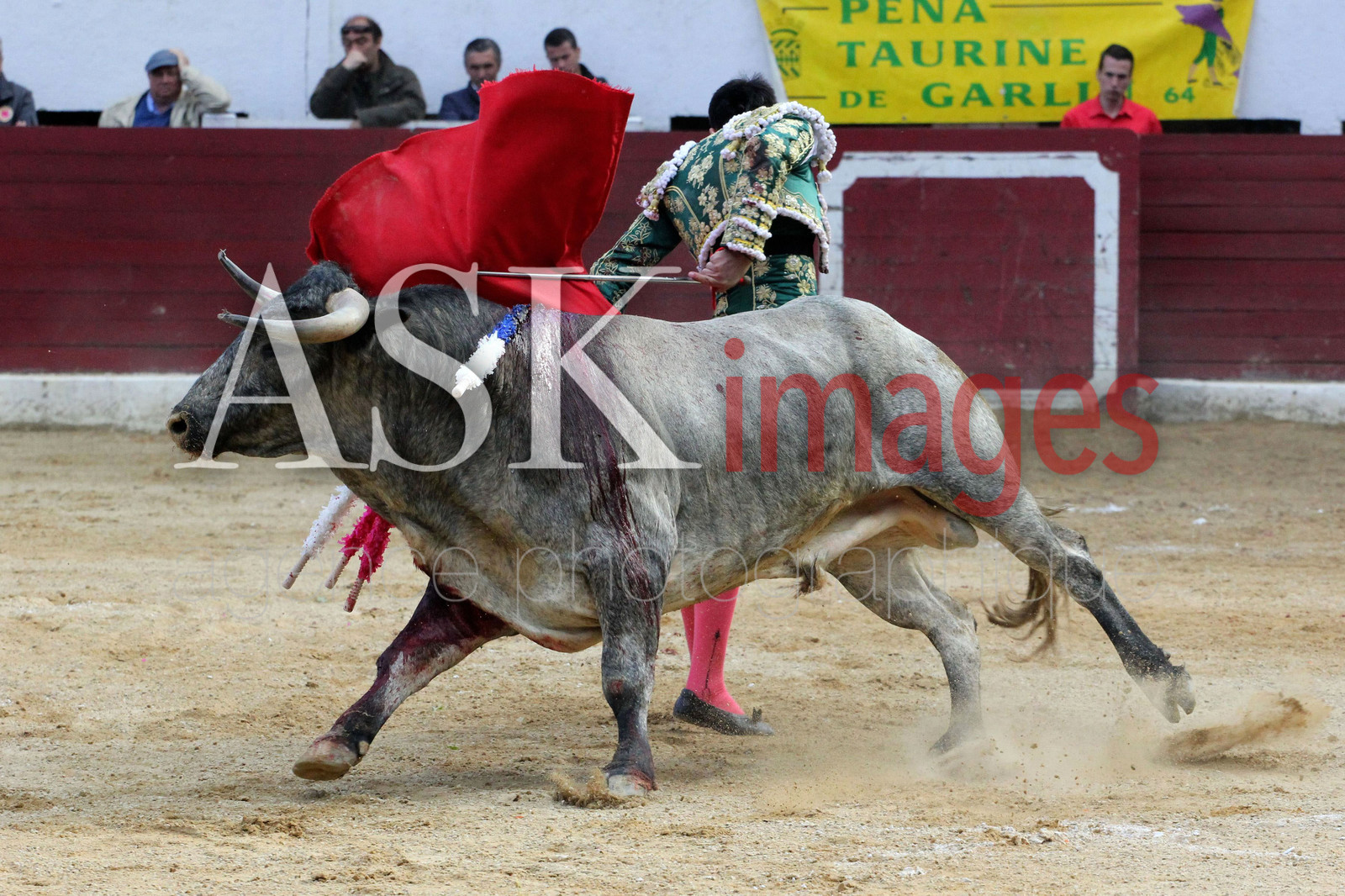 | Description | europe, france, aquitaine, landes, air sur l adour, le jeune matador, manolo vanegas pendant les novilladas de la madeleine de aire sur l adour, qui realise des passes sur un taureau de trois ans qui pese tout de meme 500 Kg, les banderilles sont planter dans le taureau |