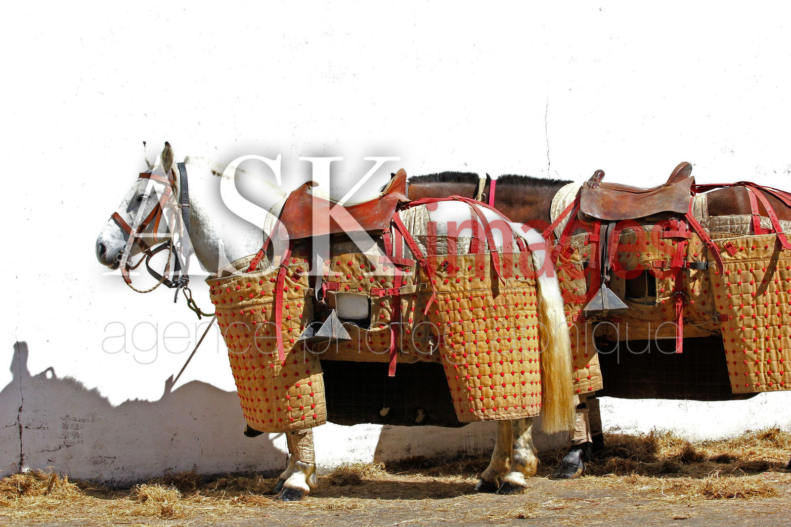 | Description | europe, france, aquitaine, landes, air sur l adour, les chevaux des picadors se reposent avant d entree dans les arenes |