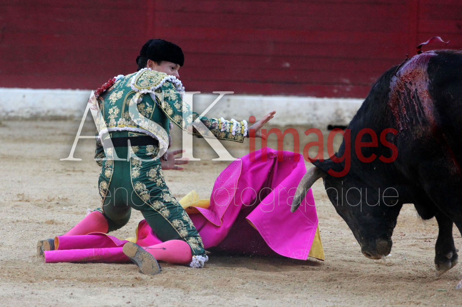 | Description | europe, france, aquitaine, landes, air sur l adour, les accidents peuvent etre tres violant comme ici avec le jeune matador, manolo vanegas pendant les novilladas de la madeleine de aire sur l adour, le taureau lui est rentrer literalement dedant |