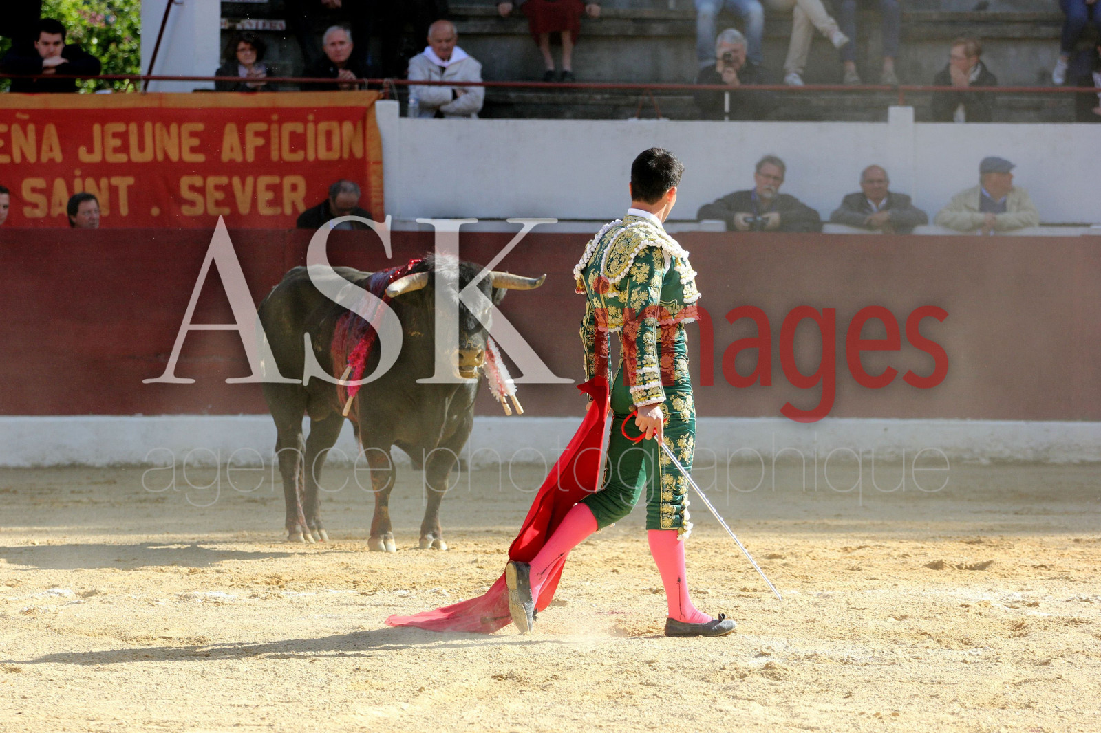 | Description | europe, france, aquitaine, landes, air sur l adour, le jeune matador, manolo vanegas pendant les novilladas de la madeleine de aire sur l adour, qui realise des passes sur un taureau de trois ans qui pese tout de meme 500 Kg, les banderilles sont planter dans le taureau |