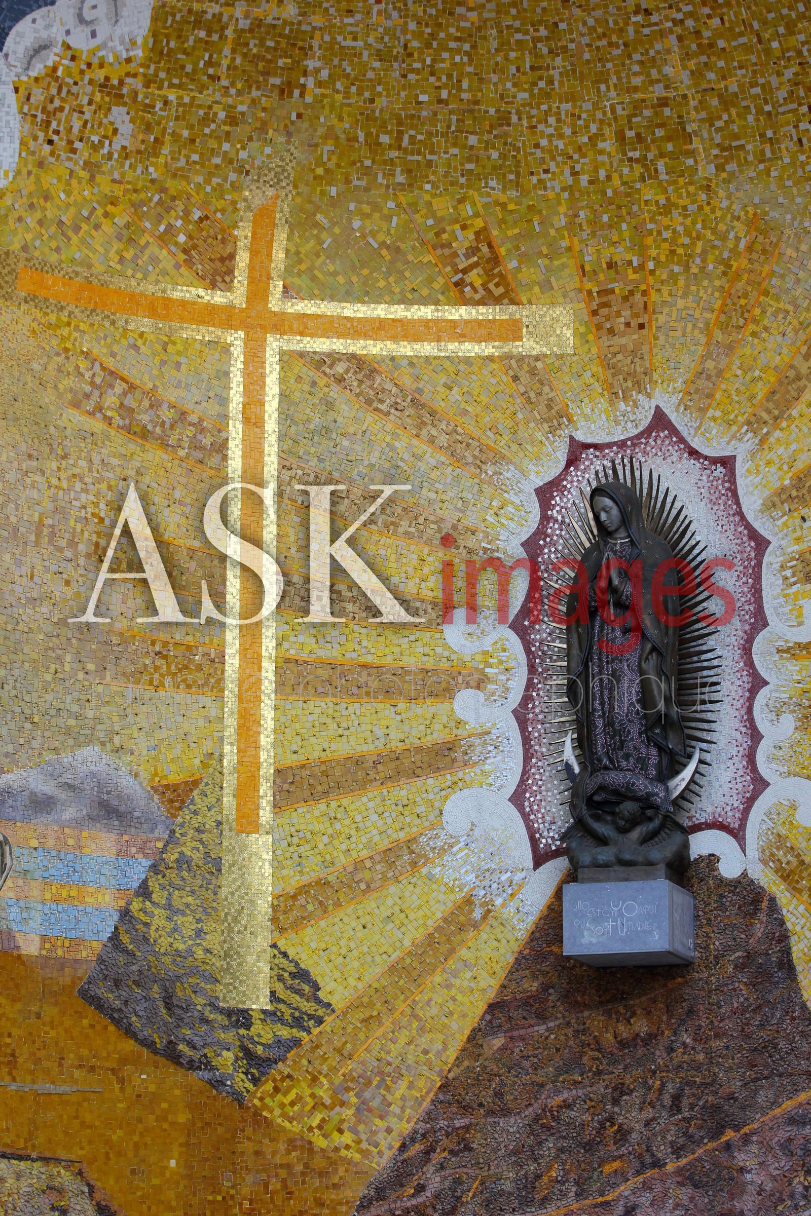 DescriptionEurope, Occitanie, Hautes Pyrenees, Lourdes, chapelle semi-circulaire creusee dans le rocher a cote de la basilique notre dame du rosaire,elle est affectee au culte et consacree a notre dame de guadalupe, evoquant le plus important site marial d'Amerique.