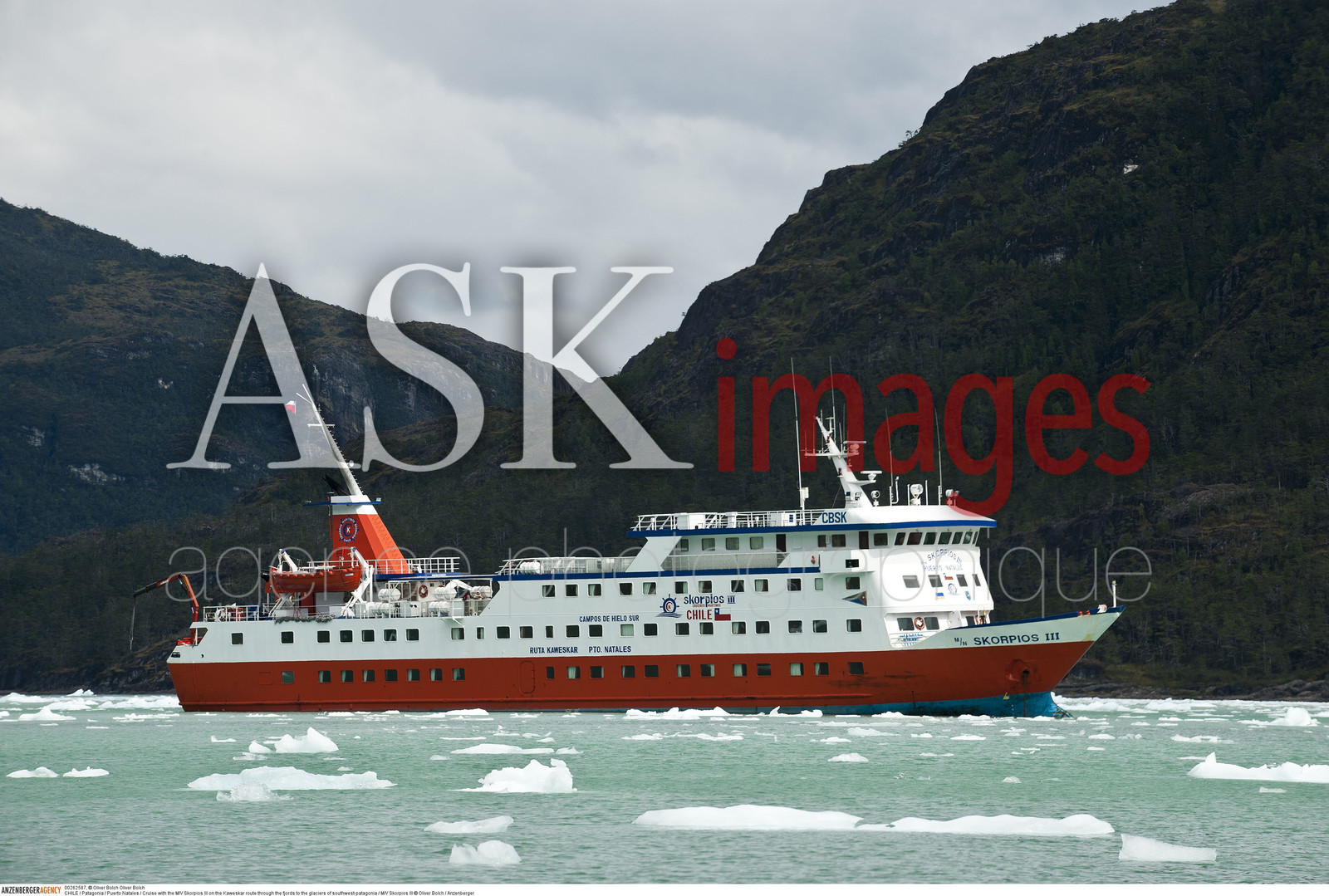 | Description | CHILE / Patagonia / Puerto Natales / Cruise with the M/V Skorpios III on the Kaweskar route through the fjords to the glaciers of southwest-patagonia / M/V Skorpios III ..© Oliver Bolch / Anzenberger |