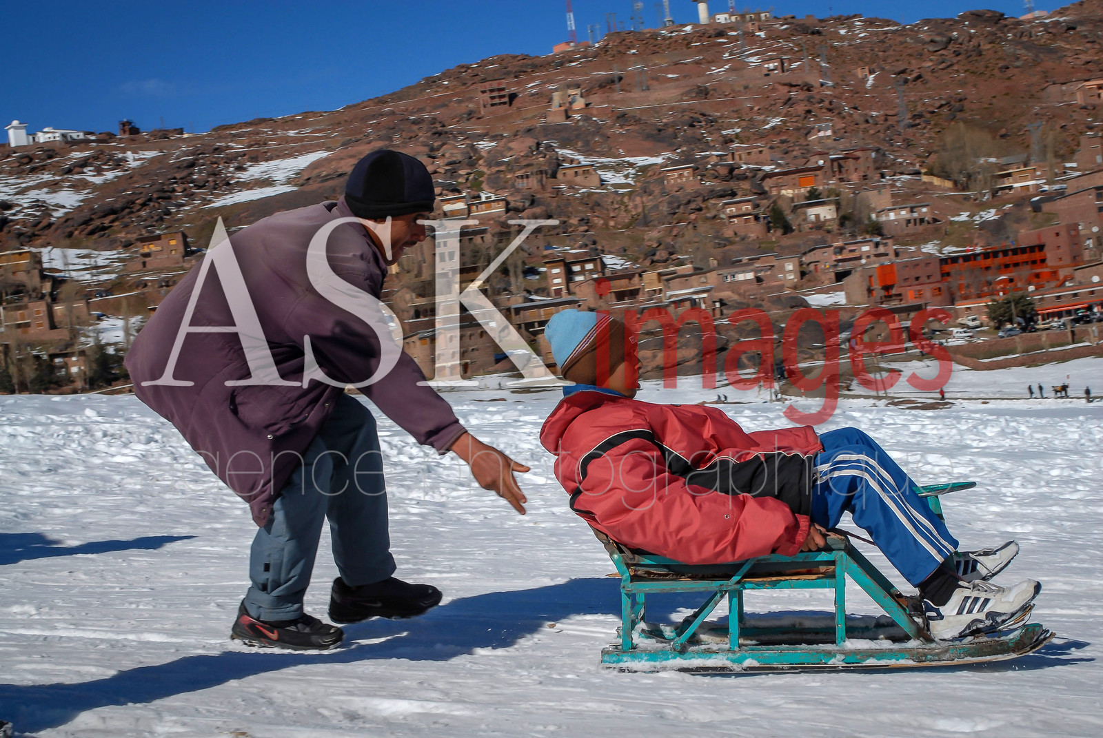 | Description | Sledging in the winter sports resort, Oukaïmden, or Oukaïmeden, Morocco |