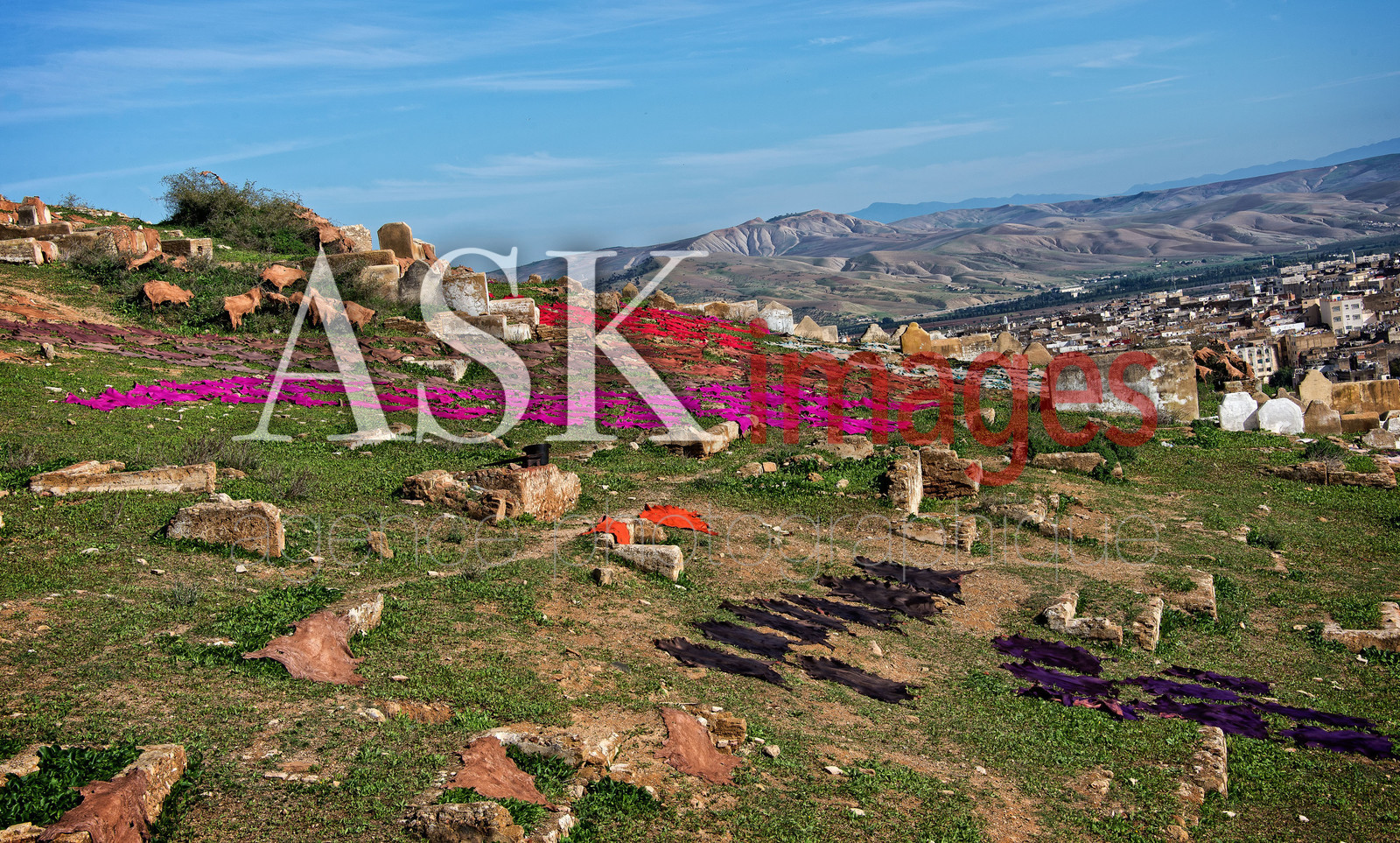 Drying of skins on the hills of Fez, Morocco