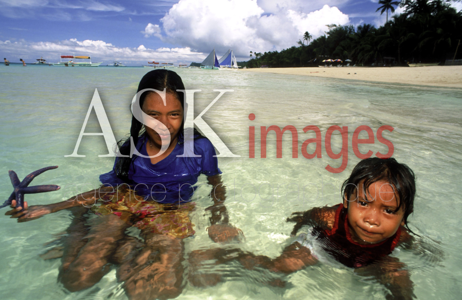 DescriptionChildren playing on the beach, Starfish, White beach, Boracay, Philippines, Boracay is a small island in the Philippines located approximately 315km south of Manila